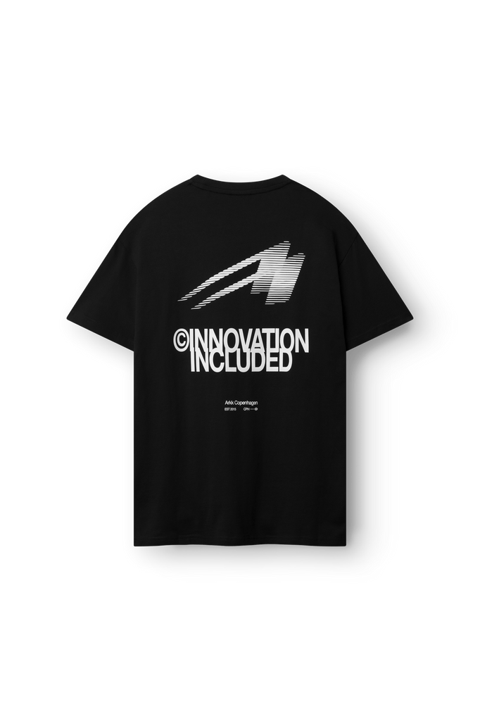 ARKK Boxy Innovation Tee – A relaxed, boxy-fit t-shirt made from 100% cotton. Designed with a subtle logo on the chest and a bold “Innovation Included” graphic print on the back. A modern statement tee that reflects ARKK’s progressive design mindset and Copenhagen-based DNA.